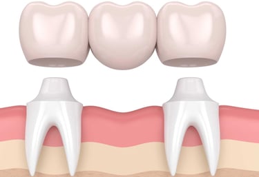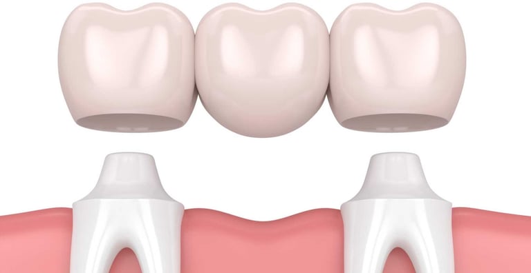 Un puente fijo se utiliza cuando existe un espacio entre 1 o más dientes, es necesario hacer una preparación en los dientes adyacentes o implantes dentales para que soporten el diente en la zona donde hay espacio y no se ha realizado la colocación de un implante dental.