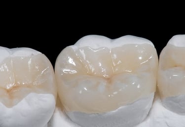 Una corona dental es una prótesis fija en forma de "funda" que se coloca sobre un diente natural o un implante para cubrirlo completamente. Se utiliza para restaurar la forma, el tamaño, la resistencia y la apariencia del diente, mejorando tanto su funcionalidad como su estética.