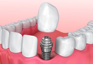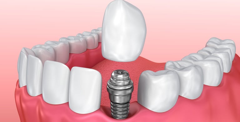 Una corona dental sobre implante es la pieza que se une al implante dental (reemplaza la raíz del diente) y permite restaurar la función de la pieza dental perdida. Es la etapa final despúes de la colocación del implante dental.