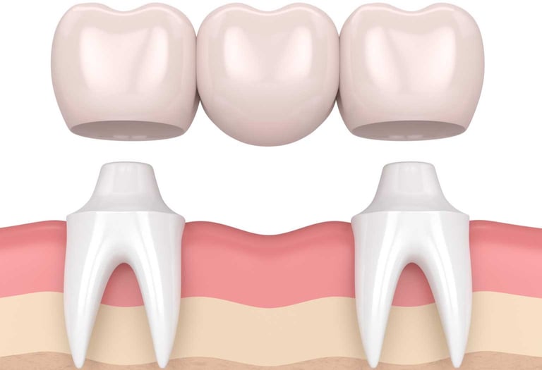 Un puente fijo se utiliza cuando existe un espacio entre 1 o más dientes, es necesario hacer una preparación en los dientes adyacentes o implantes dentales para que soporten el diente en la zona donde hay espacio y no se ha realizado la colocación de un implante dental.